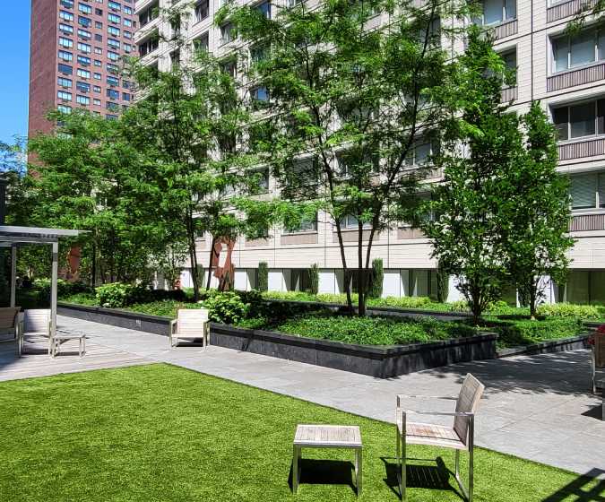 SYNLawn New York faux grass is a top choice for business owners. Our commercial-grade artificial turf is designed to withstand heavy foot traffic, is Class A fire-rated, and always looks beautiful. Installing it allows business owners to take their focus off lawn care and feel confident that they will always create a strong and lasting first impression on their customers. It will also allow you to reinvest your time and money into your products, services, and more.