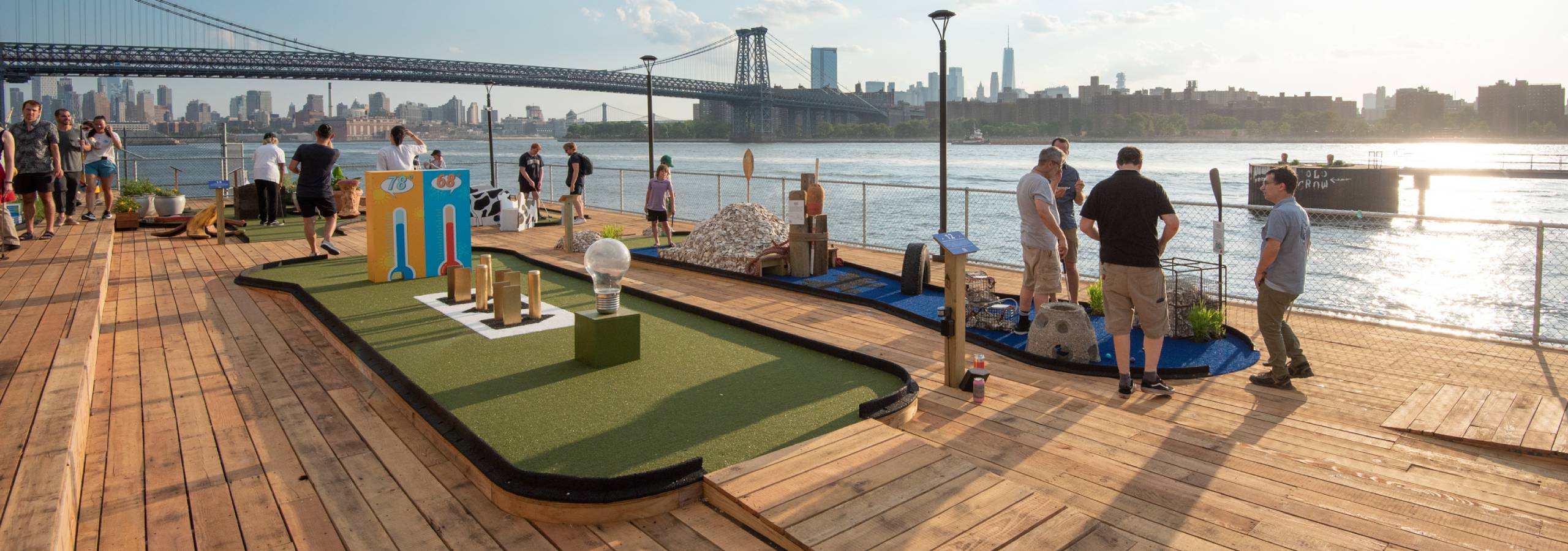 Opened to the public on July 12th, 2021, PUTTING GREEN educates its visitors on the many sustainability issues that we currently face. It explores the problems and solutions for some of the most critical climate change priorities in an exciting, educationally driven manner. Located at River Street and North 1st Street in North Williamsburg, PUTTING GREEN is open to the public 7 days a week. The course offers discounted ticket prices to make it accessible to all community members. Any profits made will be donated to local organizations focused on addressing climate change all across New York City including the Wildlife Conservation Society and the Newtown Creek Alliance.