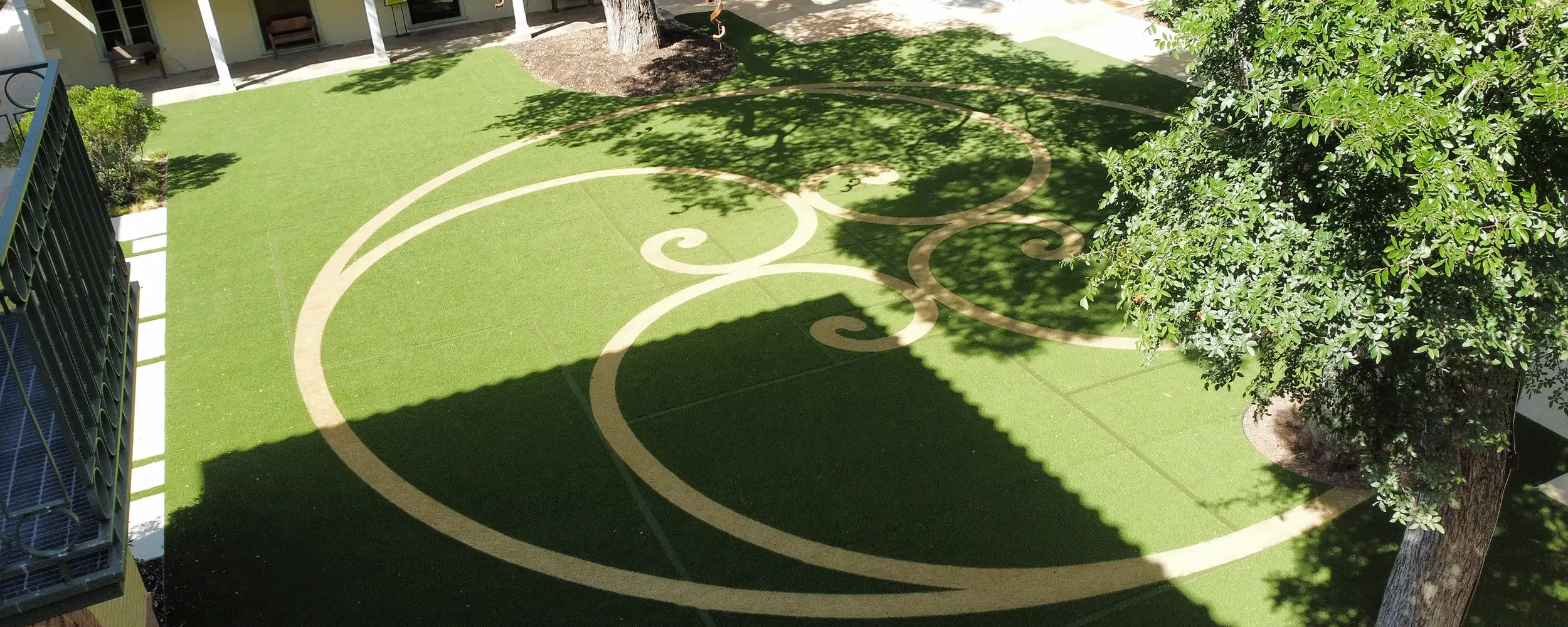 A: Yes. Custom artificial turf uses the same durable fibers and reinforced backing as standard synthetic turf. Its performance won’t be compromised by design choices, delivering long-lasting color, wear resistance, and year-round appeal.