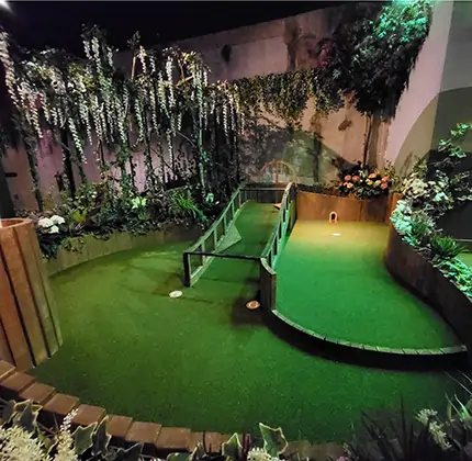 In early 2022, SYNLawn New York had the pleasure of completing an incredible and fun-filled putting green turf installation for Swingers Crazy Golf in New York, NY. Swingers takes the classic game of mini-golf and adds cocktails, gourmet street food, and live DJs. Since going viral on Tik Tok, Swingers has now opened this second location in New York, NY called Nomad, which features three 9-hole mini golf courses. Additionally, it features six cocktail bars, four street food vendors, and has a capacity for up to 525 people. Swingers also encourages visitors just to come for drinks and to enjoy the atmosphere. Swingers is the perfect mini-golf venue for those 21 and up to mingle, unwind, and enjoy the game of mini-golf! Now complete with two SYNLawn New York golf turf solutions!